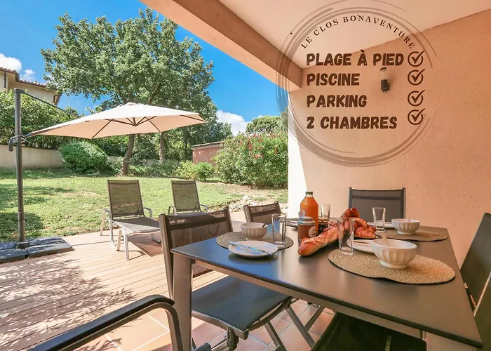 Помешкання оснащене зручностями для самостійного приготування їжі, включаючи обладнану кухню та їдальню на відкритому повітрі де гості можуть насолодитися сніданком. Для зручності гостей передбачено таке кухонне обладнання, як кавоварка. Страви європейської кухні також можна скуштувати у ресторані La Bouillabaisse Plage, що лише за 13 хвилин ходьби. Гості також можуть сісти на автобус на автовокзалі Bonaventure, розташованому всього лише за 5 хвилин ходьби, щоб оглянути решту Сен-Тропе.